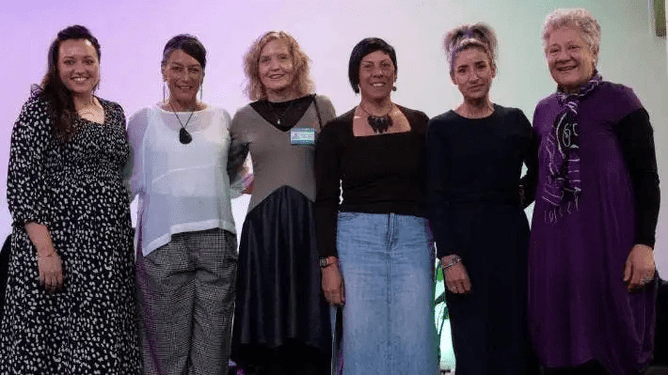 Presenters and organisers of the Trauma-informed Care National Training Day. From left Mekenna Cipres, Mirror Services; Anah Aikman, South Canterbury DHB; Dr Bronwyn Dunnachie, Werry Workforce Whāraurau; Dr Moana Eruera, Oranga Tamariki; Michelle Baughan, Mirror Services and Associate Professor Nicola Atwool of Otago University.
