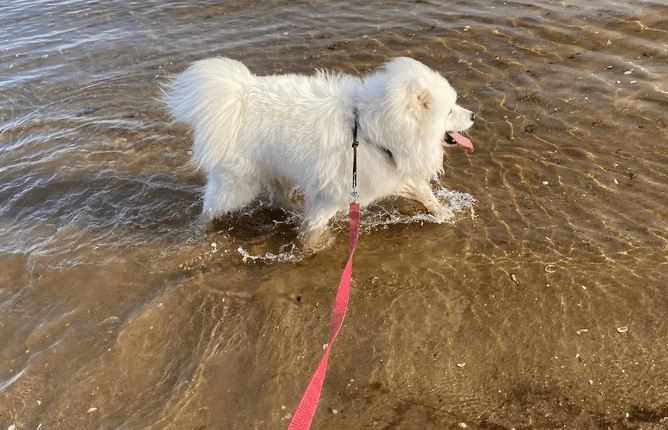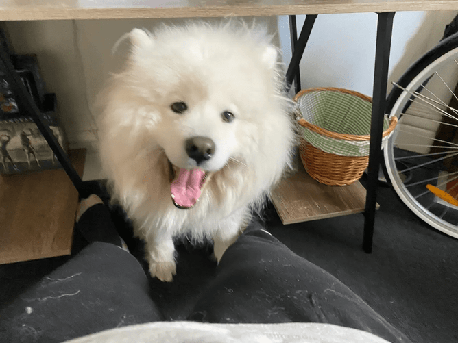 I get back into the habit of walking my flatmate’s dog every day. He is a big white cloud carrying the sun around with him. Even in the dark, he is easy to spot. His name in Japanese means happiness.