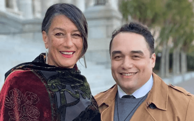 Dr Pounamu Jade Aikman (Ngāti Maniapoto, Tainui, Ngāi Te Rangi, Ngāti Awa), right, with his mother, Anah Aikman (Ngāti Maniapoto, Ngāti Wairere).He said while his work focuses on state and police violence, he was lucky not to have experienced that growing up in Timaru.