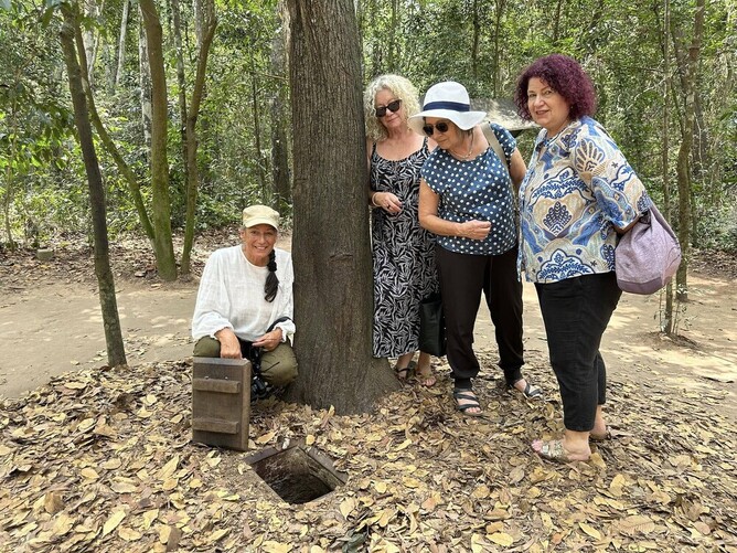 Our guide, Vy, carries the history of her country with a depth and nuance that belies her young age. As we travel two hours from Ho Chi Minh City to the Cu Chi Tunnels, she answers every question with care, no matter how unexpected. She is multilingual, present, and deeply thoughtful, carefully considering how best to provide context—because context is everything.
