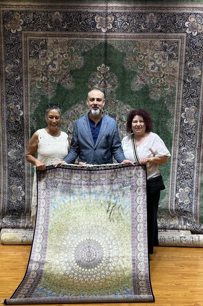 We were served saffron tea, golden and fragrant, as we shared stories and learned about the artistry behind the exquisite silk rugs that lay before us.